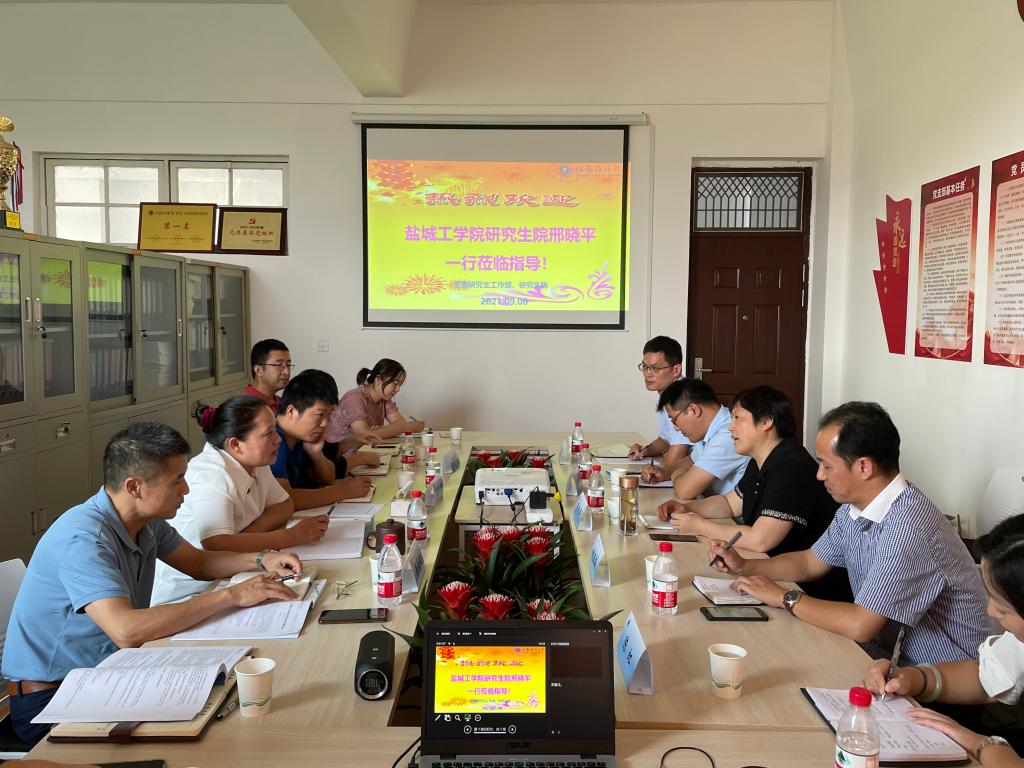 9月8日下午,盐城工学院党委研究生工作部部长、研究生院院长、学科建设办公室主任邢晓平一行6人来我校调研交流。党委研究生工作部部长、研究生院院长卢霞,学科建设办公室主任董志国,以及党委研究生工作部、研究生院、学科建设办公室其他成员一并参加调研座谈。