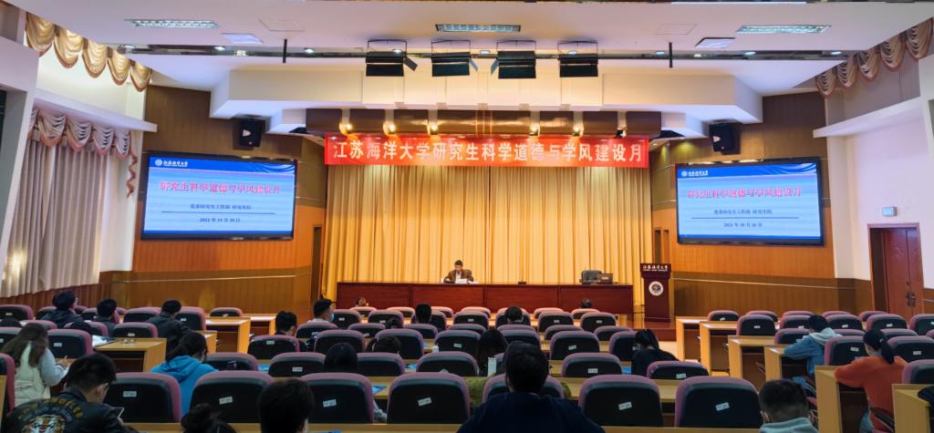 为深入学习贯彻落实习近平总书记“七一”重要讲话精神,落实立德树人根本任务,深化“我为群众办实事”实践活动,2021年10月20日下午,我校“研究生科学道德与学风建设月”活动开幕式在文博楼报告厅举行,研究生培养科、学位科、教育管理科负责人和食品科学与工程学院、文法学院2021级研究生近100人参加。党委研究生工作部副部长、研究生院副院长秦海波主持开幕式。