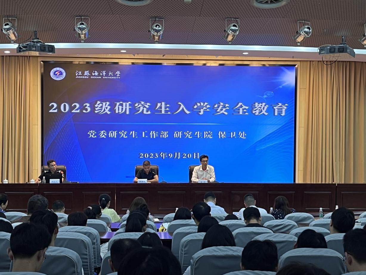 为深入学习宣传贯彻习近平总书记关于教育强国、网络强国的重要思想,深入学习宣传贯彻党的二十大精神,进一步提升我校研究生的安全意识和安全防护技能,营造安全、健康、文明的校园环境,9月20日下午,党委研究生工作部、研究生院、保卫处在会议中心黄海厅联合开展2023级研究生入学安全教育,邀请连云港市公安局高新分局特巡警大队吴永先警官作反诈防诈安全知识专题讲座。党委研究生工作部部长、研究生院院长陈书法和党委保卫部部长、保卫处长姜兵出席,党委研究生工作部、研究生院、学科建设办公室全体工作人员参会,757名2023级研究生新生以线上+线下的方式参加。活动由党委研究生工作部副部长、研究生院副院长秦海波主持。