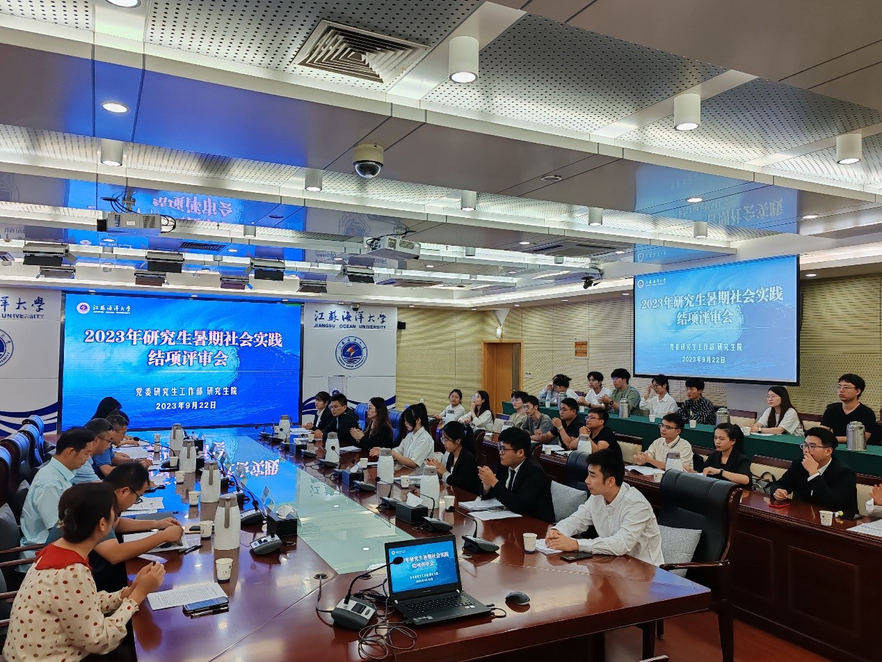 9月22日下午, 我校2023年研究生暑期社会实践结项评审会在东海厅举行。党委学生工作部部长、学生工作处处长陈德翼,外国语学院党委副书记陆文前,艺术设计学院党总支副书记王欢,海洋科学与水产学院党委副书记朱小明,校团委副书记黄媛等5人担任评委;党委研究生工作部工作人员以及相关研究生暑期社会实践项目团队成员共近40人参加。评审会由党委研究生工作部副部长、研究生院副院长秦海波主持。