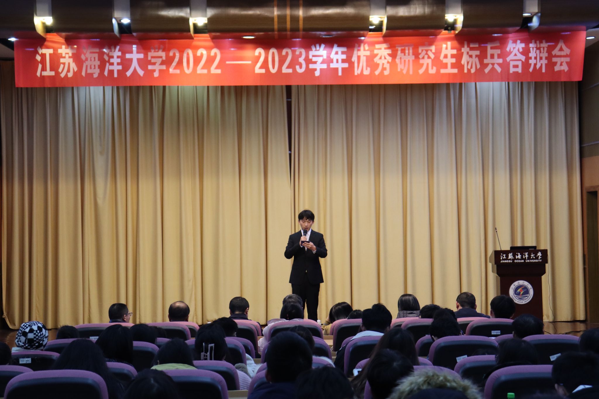 为了切实做好优秀研究生标兵评审工作,充分发挥优秀研究生的榜样力量,展现江海大研究生学子的精神风貌,2023年11月29日下午,由党委研究生工作部、研究生院主办的2022-2023学年优秀研究生标兵展示评审会在文博楼报告厅举行。党委学生工作部部长、学生工作处处长、人民武装部部长陈德翼,校团委书记黄吉庆,海洋技术与测绘学院党委书记王晶,文法学院党委副书记王国银,海洋工程学院副院长黄大志,电子工程学院副院长杨淼,外国语学院副院长王镇等7人担任评委。13名优秀研究生标兵候选人和180余名研究生现场参加。