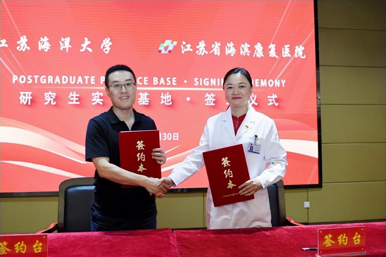 江苏省海滨康复医院始建于1976年,隶属于省卫生健康委,是一所集健康保健、健康管理、康复治疗、中医养生保健于一体的园林式医院。本次双方共建研究生实践基地签约暨揭牌仪式的举行,标志着江苏海洋大学和江苏省海滨康复医院在研究生人才培养合作方面迈出了坚实的一步,进入了一个新阶段。