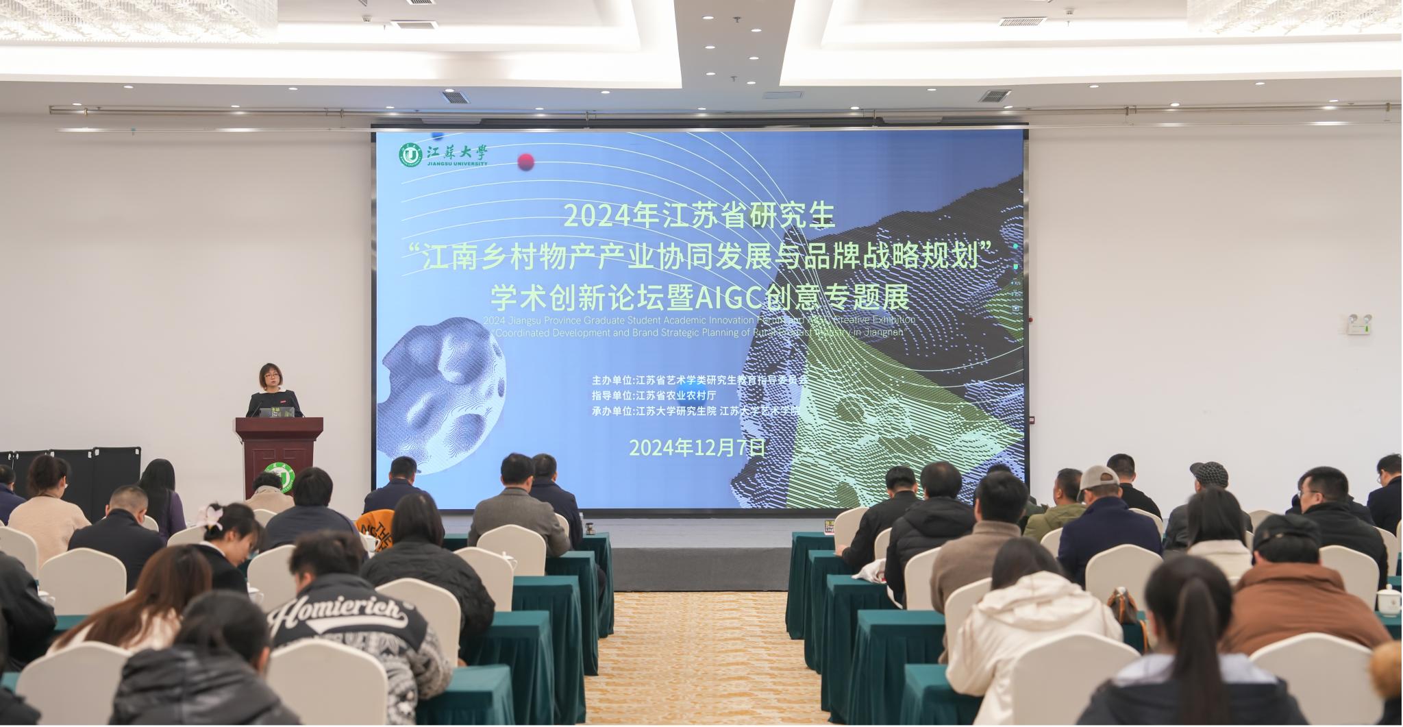 2024年12月7日,江苏省研究生“江南乡村物产产业协同发展与品牌战略规划”学术创新论坛在江苏大学成功举办。此次论坛由江苏省艺术学类研究生教育指导委员会主办,江苏大学研究生院、江苏大学艺术学院承办,江苏省农业农村厅指导。本次论坛以“江南乡村物产产业协同发展与品牌战略规划”为主题,聚焦于江南乡村丰富物产资源,探讨如何通过科学规划和产业协同,充分挖掘和利用这些资源推动乡村经济的转型升级,深入研讨品牌战略在乡村振兴中的关键作用,探索建立具有江南特色的乡村品牌来提升产品和服务的附加值扩大市场影响力,探寻江南乡村物产产业可持续发展的新策略、新模式和新路径。