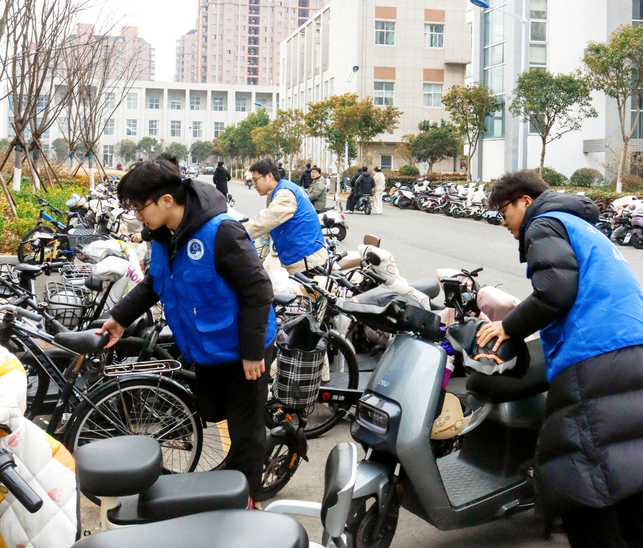 研究生志愿者们分组行动,化身“校园守护者”。宿舍D区里,有人俯身清理绿化带中的纸屑,有人将散乱的单车整齐归位,还有人用消毒湿巾仔细擦拭楼道扶手和门把手……马卡洛夫海洋工程学院的吕帅迪同学一边整理车辆一边说:“看似简单的劳动,却让我们感受到集体的力量。停车区变整洁了,大家的文明意识也更加强了!”点滴行动汇聚成海,光洁的楼道、井然有序的公共区域,见证了研究生学子对校园的深情守护。从纸屑清理到车辆归位,学子们以“微行动”凝聚“大能量”,为校园文明注入青春温度。