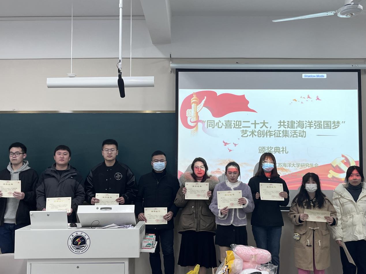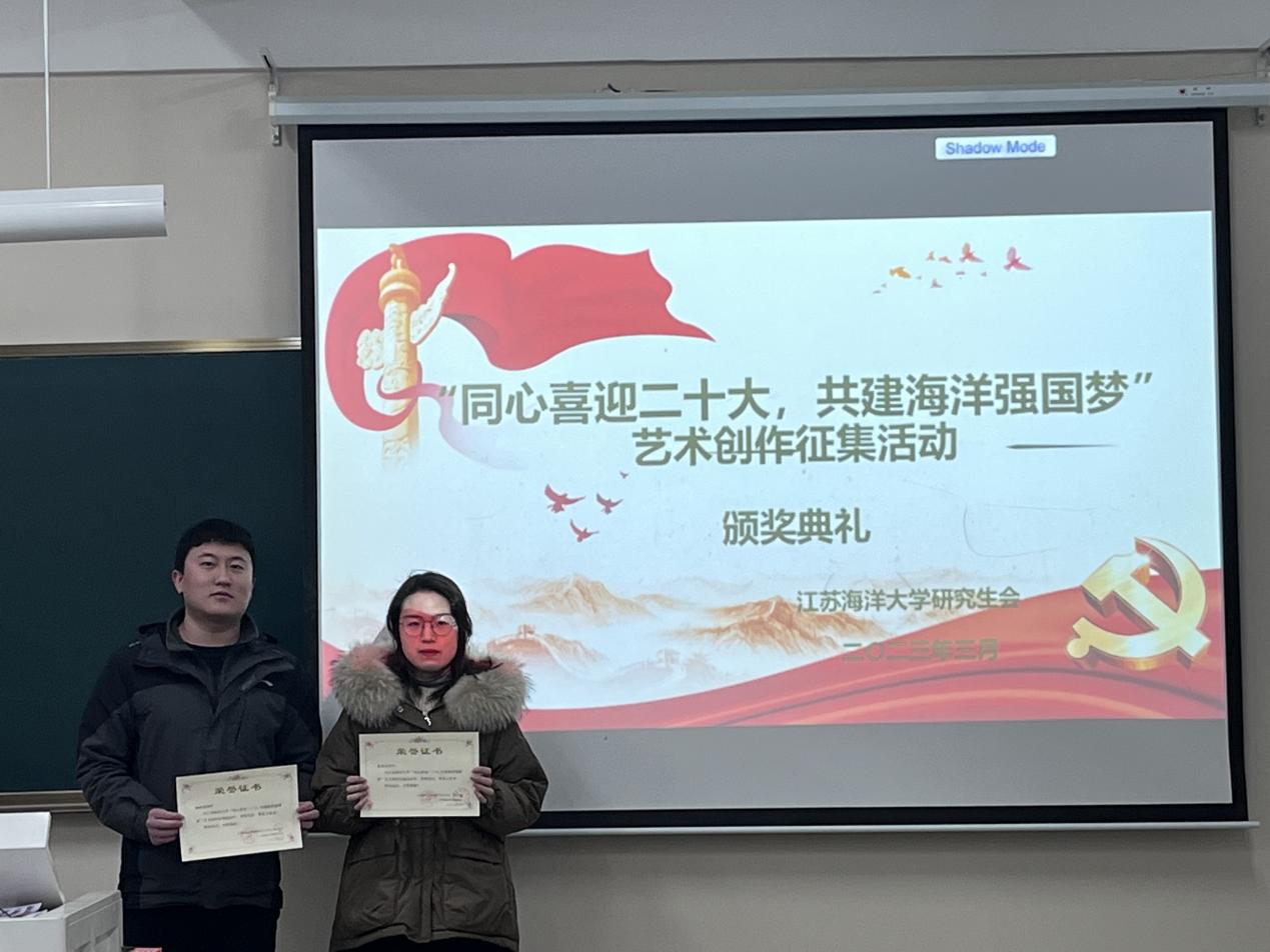 为庆祝党的二十大胜利召开,团结引领广大学生青年听党话、感党恩、跟党走,江苏海洋大学研究生会生活权益部举办“同心喜迎二十大,共建海洋强国梦”主题活动,开展全校研究生书画、诗歌、摄影及征文创作征集活动,紧贴红色或海洋主题,追随习近平新时代中国特色社会主义思想,展现出研究生们较高的艺术创作水平与思想追求。