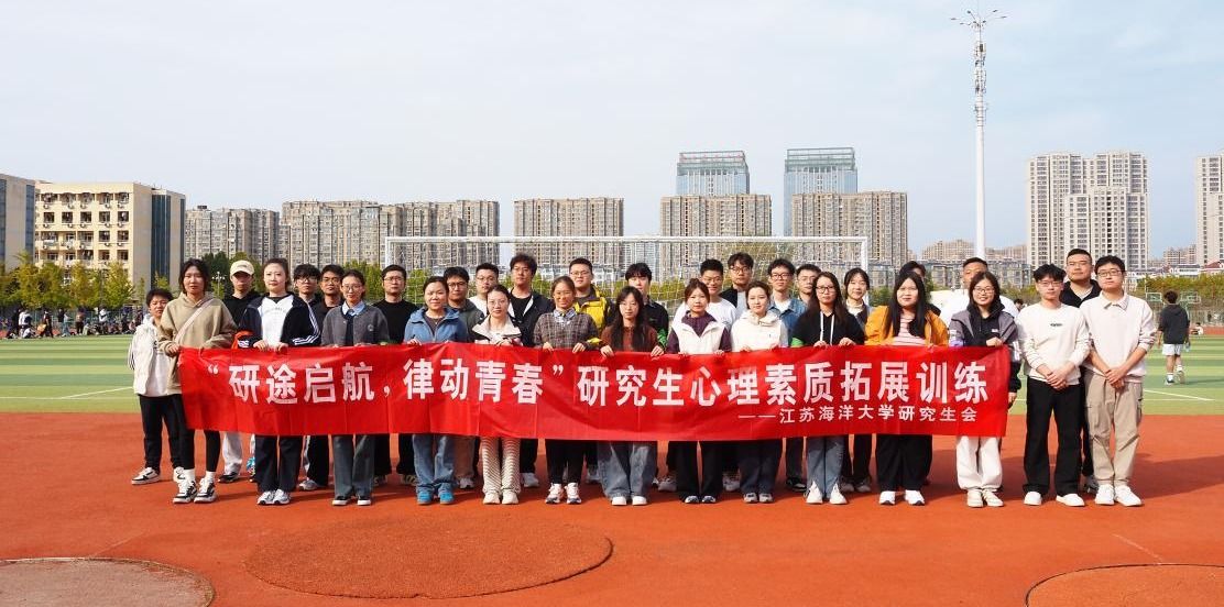 10月29日下午,江苏海洋大学苍梧校区第一田径场上洋溢着青春的气息,“研途启航,律动青春"研究生心理素质拓展训练在此成功举办。本次活动旨在提升研究生的心理素养,加强各研究生分会成员间的团队协作与情感交流,由江苏海洋大学党委研究生工作部与校研究生会联合主办,土木与港海工程学院研究生会协办。校、院研究生会成员与众多研究生代表齐聚一堂。大家在轻松愉悦的氛围中舒缓压力,在团队竞技环节里奋勇争先,最终收获了充盈的喜悦与身心的舒缓。