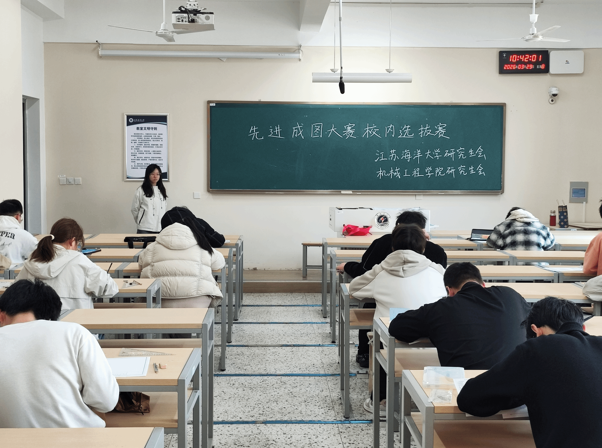 2026年3月29日,江苏海洋大学第六届大学生先进成图技术与产品信息建模创新大赛校内选拔赛顺利举办。本次赛事由机械工程学院主办,校研究生会、机械工程学院研究生会协办,旨在对标全国赛事标准,为省赛、国赛遴选储备优秀选手,搭建以赛促学、以赛促创的实践育人平台。