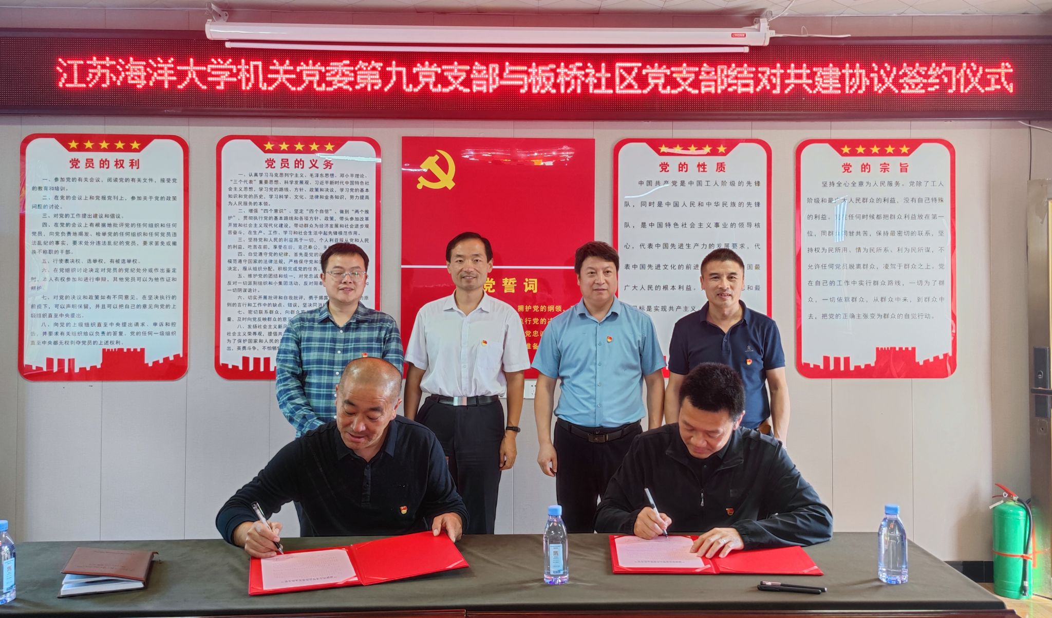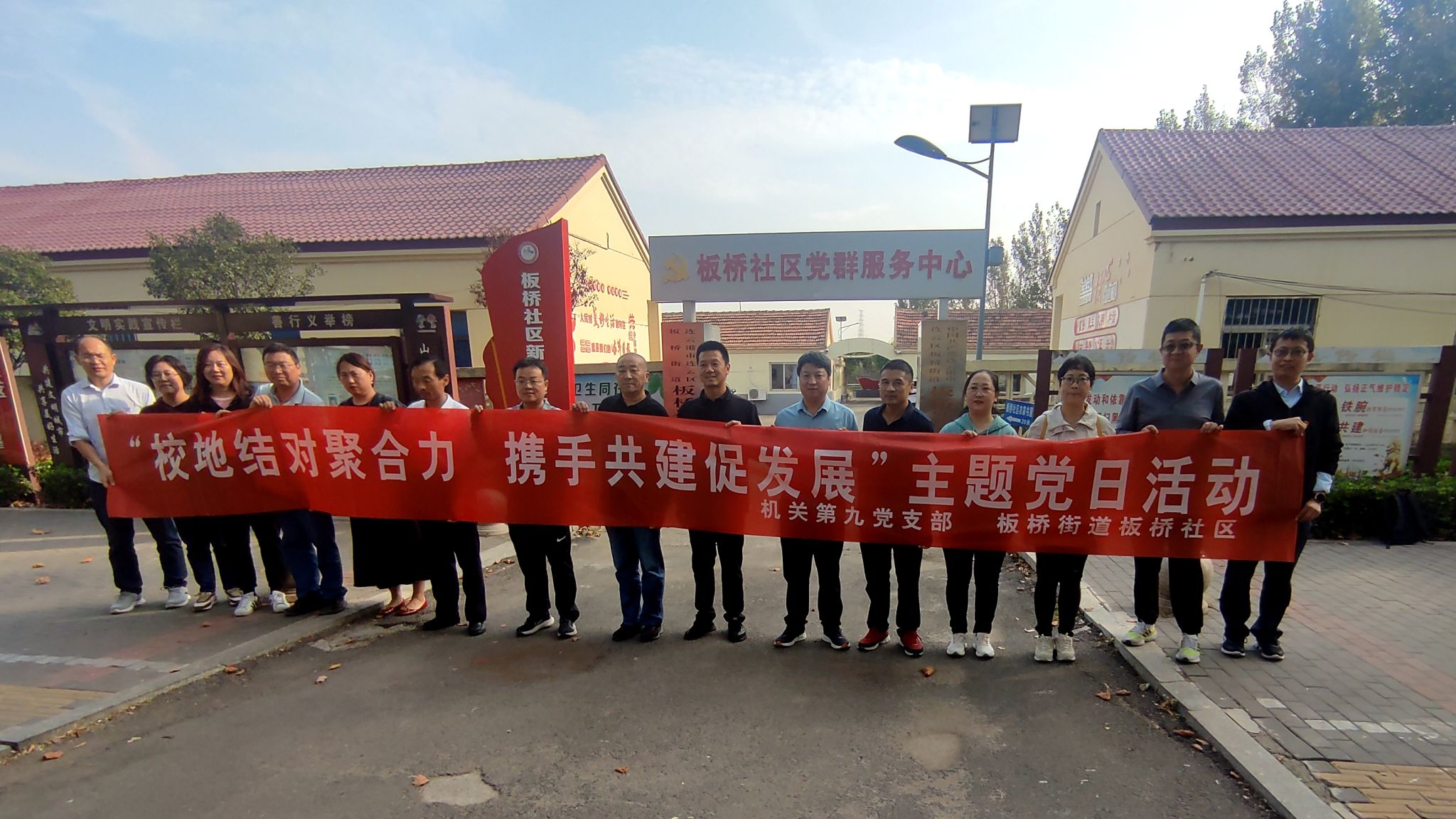 为深入学习宣传贯彻党的二十大精神,巩固主题教育学习成效,充分发挥党建示范引领作用,构建党建工作新格局,10月18日下午,机关第九党支部组织全体党员群众前往连云区板桥街道板桥社区开展校地结对共建活动。学科建设办公室主任董志国、连云区委改革办专职副主任王书全、板桥社区党支部书记、居委会主任张志刚等出席,2个共建党支部的党员群众共20人参加。机关第九党支部副书记高嵩、板桥街道党工委组织委员高浩力共同主持共建签约活动。
