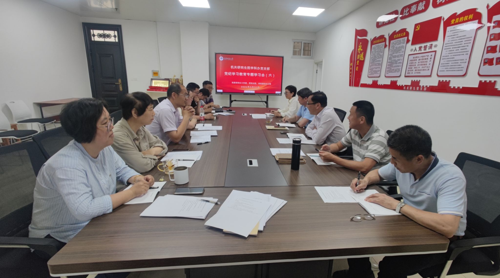 为进一步深化党纪学习教育,筑牢党员干部纪律防线,机关研究生院学科办党支部于5月31日下午组织开展了“强化纪律意识,提升党性修养”主题党日活动,支部全体党员参加活动。